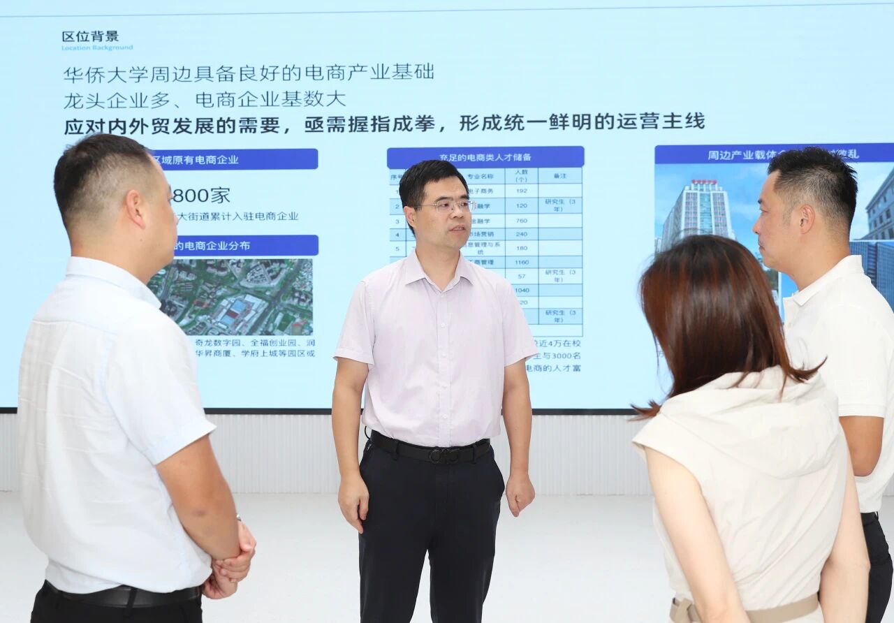 9月2日下午,区长林清伏带队到华大街道,调研环华侨大学电商生态圈、南华路活力街区有关工作。区领导李锋钒、丁增辉参加。