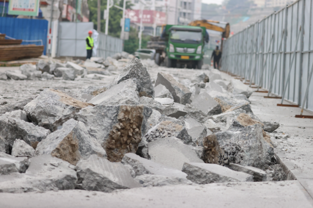 在东海街道宝山社区的厨头自然村,并不宽敞的水泥村道上,几名工人正整理施工现场;道路中央已完成开挖。